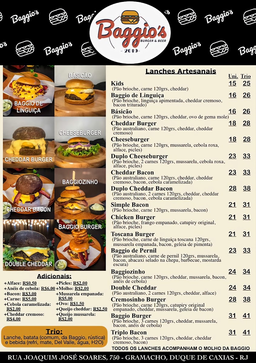 Welcome to Baggio's Burger & Beer, a culinary gem located in the heart of Vila Leopoldina, Duque de Caxias, Brazil. This vibrant establishment specializes in delivering mouthwatering burgers, tantalizing ribs with barbecue sauce, and spicy coxinhas that pack a flavorful punch. With an impressive selection of ice-cold beers and chopp, it’s the perfect spot for unwinding after a long day.